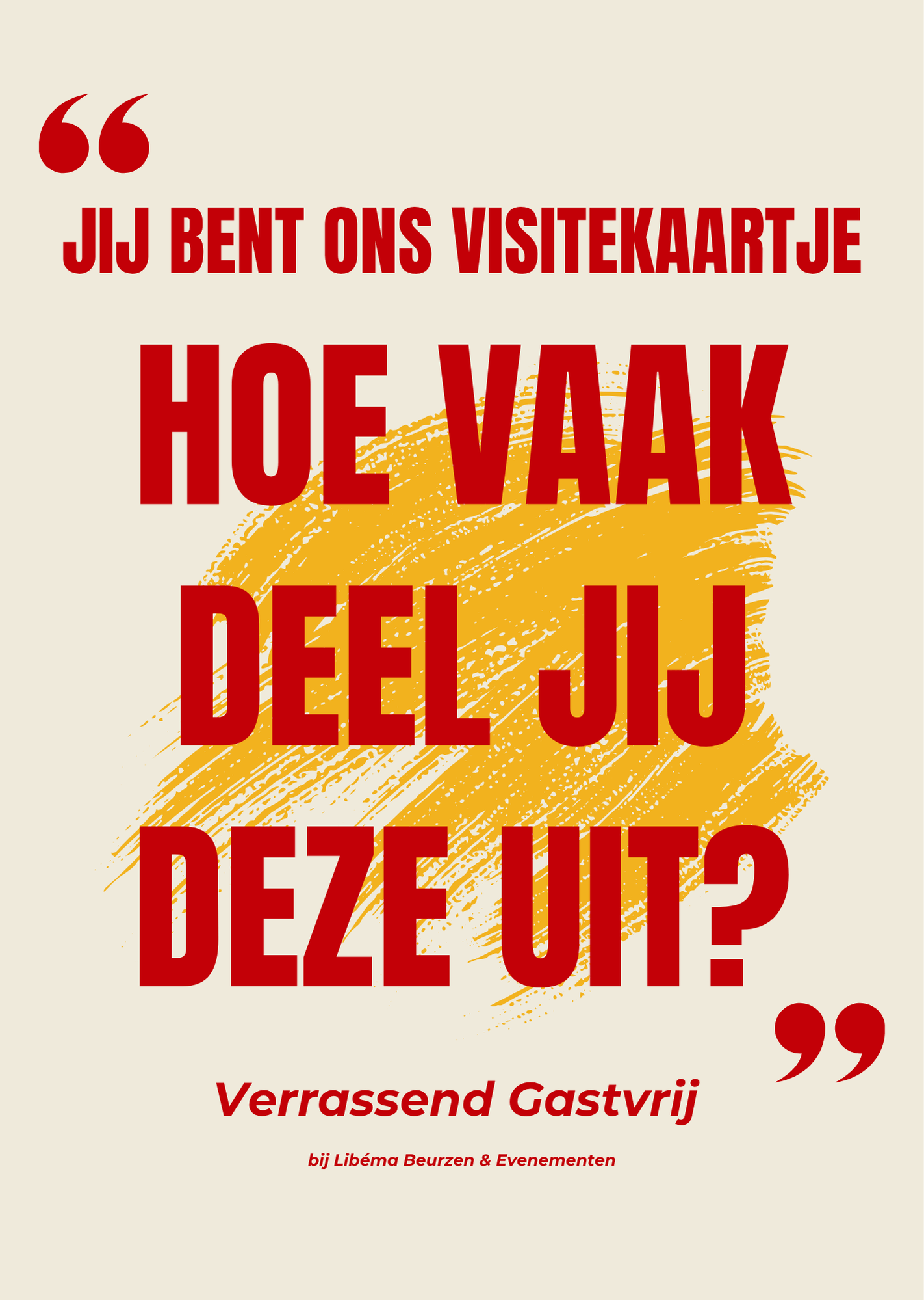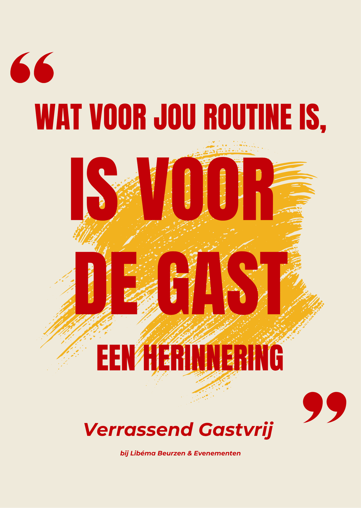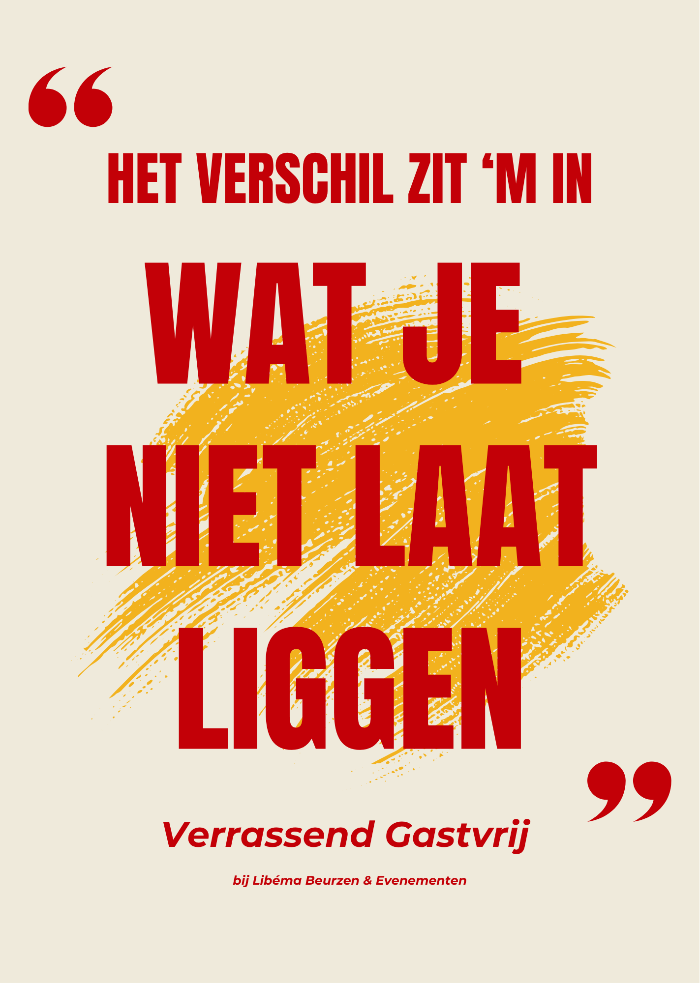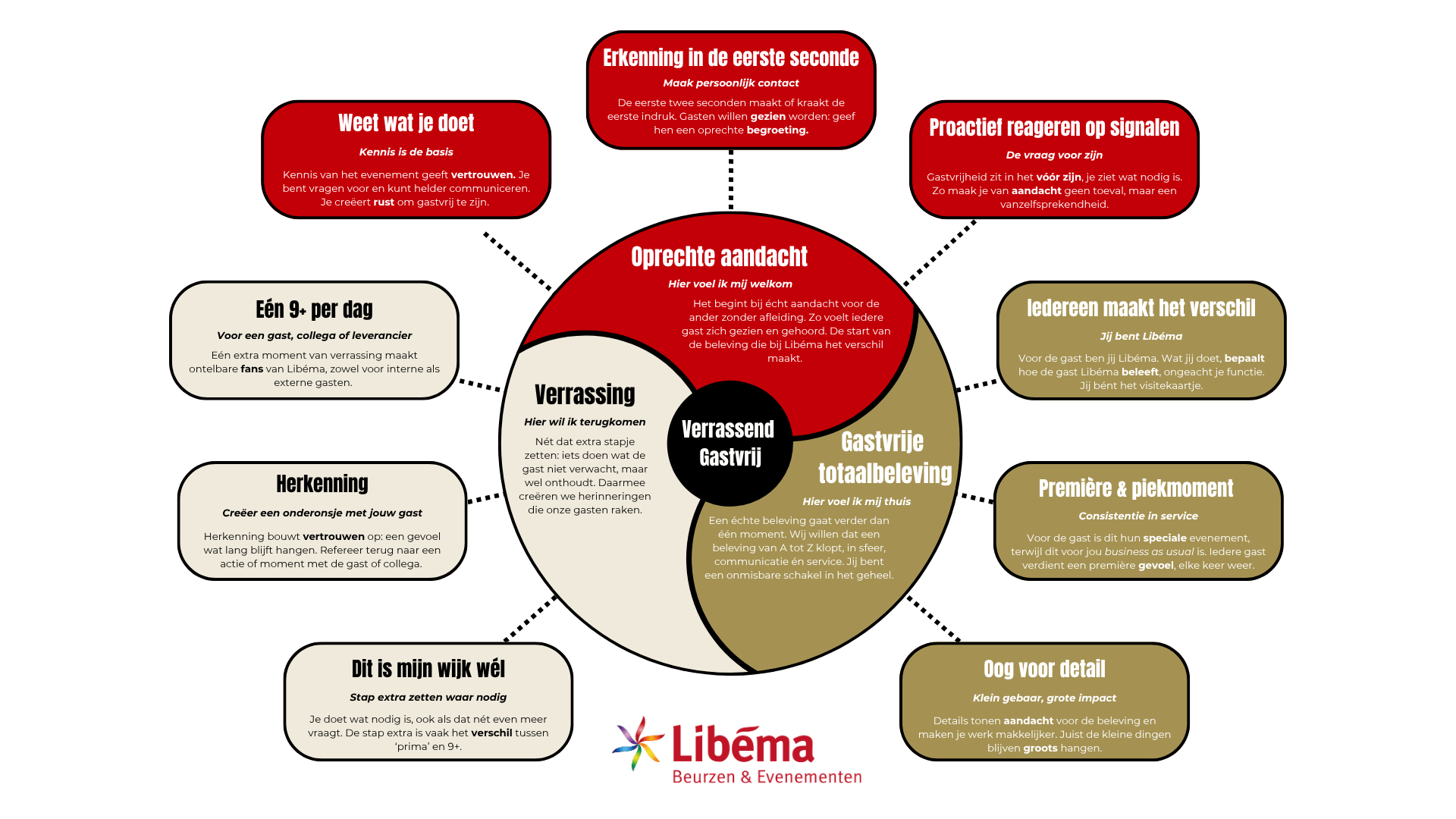 Voor Libema Beurzen en Evenementen, de exploitant van onder meer de Brabanthallen,  ontwikkelden we het vliegwiel “Verrassend Gastvrij”. Dit vliegwiel is geen poster op de muur. Het is een gedeeld denkkader dat vertelt wat gastvrijheid betekent voor medewerkers in de parkeergarage, aan de balie, bij de catering en in de directiekamer.